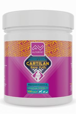 Veterinární přípravek pro PSY a KOČKY s OMEGA-3 a vitamíny K2 a D3 pro správnou funkci kloubní chrupavky, kostí, šlach a vazů a jejich optimální mineralizaci.