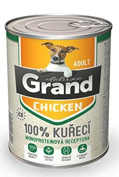 Grand deluxe 100% Kuř.Adult 400 g - 100% KUŘECÍ monoproteinová receptura Doplňkové krmivo pro psy s vysokým podílem vitamínů a aminokyselin v přírodní formě.