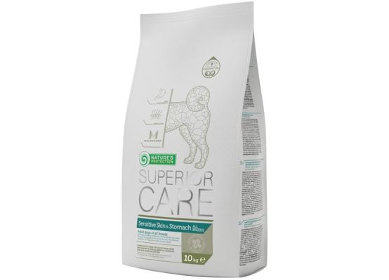 Nature's Protection Superior Care Sensitive Skin & Stomach Small Breeds - kompletní krmivo pro dospělé psy malých plemen. Hlavním zdrojem živočišných bílkovin je vysoce kvalitní jehněčí pro snadné trávení. Receptura neobsahuje pšeničný lepek ani kukuřici, proto je doporučována psům s citlivým trávicím systémem. Omega 3 a 6 mastné kyseliny podporují zdravou pokožku a lesklou srst, stejně jako kvalitní kokosový olej. Prebiotika, výtažek z juky a přírodní vláknina pomáhají zajistit správnou střevní aktivitu. Složení: Jehněčí moučka (min. 26%), rýže, ječmen, drůbeží tuk, bramborový protein, cukrovkové řízky, hrách, hrachový protein, lněné semínko, pivovarské kvasnice, kokosový olej, dynamicky mikronizovaný klinoptilolit (1 %), mononatrium-fosfát, extrakt z čekanky, mananno-oligo-sacharidy (MOS), extrakt z juky, kvasnice (beta-glukany), sušený květ měsíčku. Analytické složky: Hrubý protein 28 %, hrubé oleje a tuky 16 %, hrubý popel 9 %, hrubá vláknina 2,1 %, vápník 1,5 %, fosfor 1 %, draslík 0,5 %, sodík 0,4 %, omega 3 mastné kyseliny 0,63 %, omega 6 mk 2,47 %. Doplňkové látky: Nutriční doplňkové látky/1 kg: vitamin A 18000 m.j., vitamin D3 1500 m.j., vitamin E 530 mg, kyselina listová 1 mg, biotin 0,2 mg, niacin 35 mg, vitamin B6 3 mg, vitamin B1 3 mg, vitamin B12 0,05 mg, cholinchlorid 1480 mg, síran železnatý 50 mg, jodičnan vápenatý 1,5 mg, síran měďnatý 5 mg, síran manganatý 20 mg, síran zinečnatý 115 mg, seleničitan sodný 0,1 mg, L-karnitin 50 mg. Technologické dopl. látky: výtažek z rozmarýnu, tokoferolové extrakty z rostlinných olejů. Dávkování: Doporučená denní krmná dávka hmotnost dospělého psa množství 1-2 kg 30-51 g 2-3 kg 51-69 g 3-4 kg 69-86 g 4-5 kg 86-101 g 5-6 kg 101-116 g 6-7 kg 116-130 g 7-8 kg 130-144 g 8-9 kg 144-157 g 9-10 kg 157-170 g Množství uvedené v tabulce je pouze orientační a je nutno jej přizpůsobit podle potřeb každého psa.