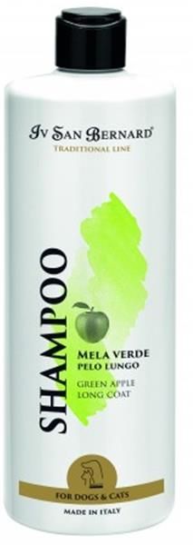 Šampon pro běžné mytí s obsahem zeleného jablka je určený pro dlouhosrsté psy a kočky. Má svěží vůni, tvoří bohatou pěnu a zajišťuje hydrataci kůže. Jeho účinek vychází z toho, že dlouhá srst vyžaduje dostatek kolagenu po celé své délce. Jeho složky napomáhají odstraňovat zacuchanou srst, zajišťovat lesk a elasticitu srsti. Podání a dávkování: Vodou sprchuje srst a kůži psa nebo kočky dokud nejsou dokonale namočené. Šampon nařeďte 1:3 a jemně vmasírujte do srsti celého povrchu těla. Šampon po umytí spláchněte hojným množstvím vody.