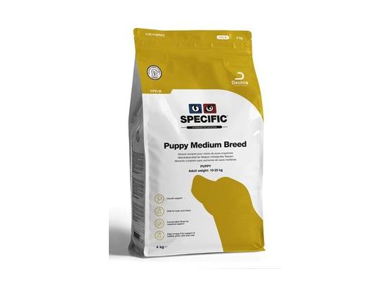 Doplňující informace Toto krmivo je velmi vhodné pro štěňata středních plemen. SPECIFIC™ CPD-M Puppy Medium Breed je možné podávat od doby odstavu (5.-6. týden života) do dosažení 80% tělesné hmotnosti dospělého jedince. Poté je vhodné postupně přejít na krmivo SPECIFIC™ CXD-M Adult Medium Breed/CXW Adult All Breeds.